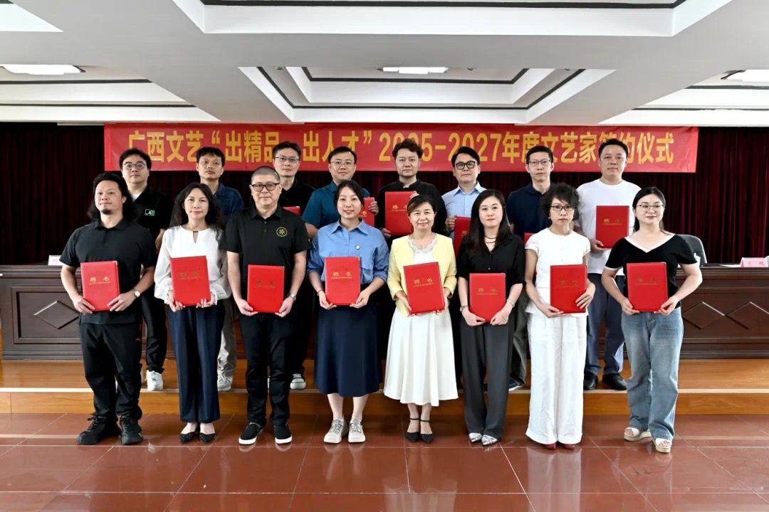 6月12日,广西文艺“出精品、出人才”激励计划2025-2027年度文艺家签约仪式在南宁举行,来自全区各地的17位广西优秀文艺家签订了创作扶持协议。伟德国际1949创意写作教研室董迎春、刘俊昌(小昌)入选。