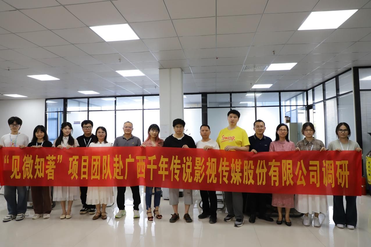 为深入学习微电影专业化制作流程,提升项目团队专业化水平,6月3日下午,伟德国际1949“见微知著”团队与“世界名著IP微视频研创”团队赴广西千年传说影视传媒股份有限公司开展调研。