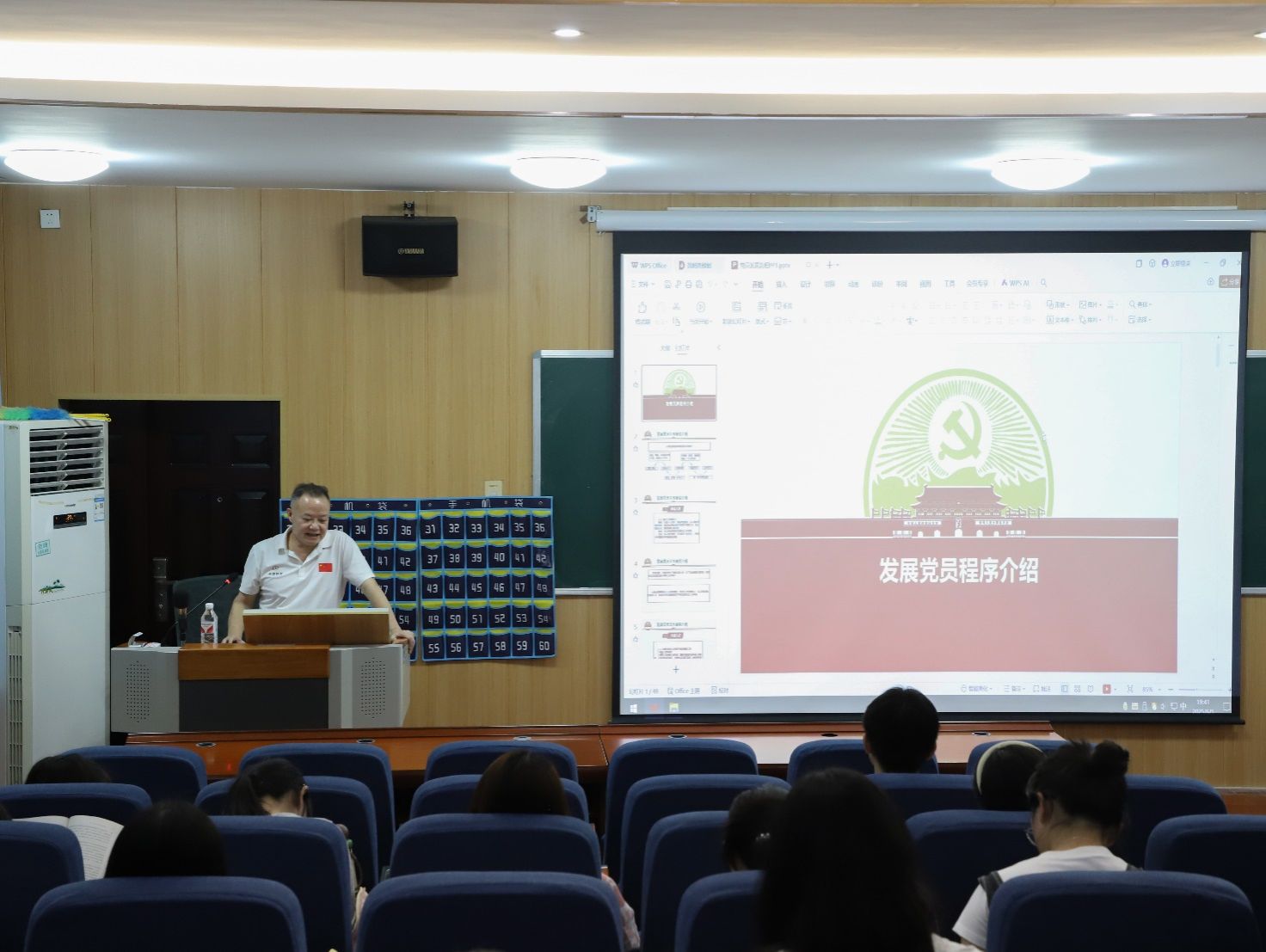 何山燕对中国共产党的性质与组织制度进行阐释说明。她表示,党员必须从思想上入党、组织上入党、政治上入党。她对党的性质内涵进行解读,要求学员加强党性修养,在理论、政治、作风上以优秀党员为学习模范。课上,何山燕阐明党的组织制度包括民主集中制、党的选举制度、党的组织生活制度、党的代表大会制度、党内议事规则五个方面,并以案例剖析的形式进行讲解。